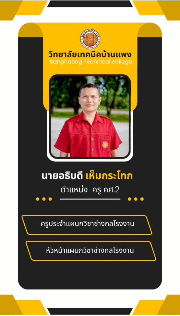 หน้าที่และความรับผิดชอบ ฝ่ายวิชาการ → แผนกวิชาช่างกลโรงงาน